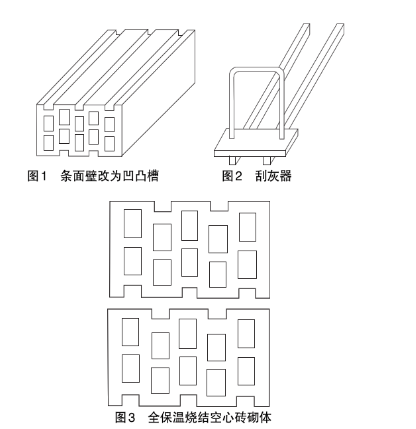 全保溫燒結空心磚是一種創新產品,是基于200mm*240mm*115mm保溫磚結構上的改進,磚體結構內肋占17.4%,切斷冷熱橋能起到降低溫差,磚的條面壁占20.8%,墻體的砌筑砂漿10mm占8.6%,把這29.4%的冷熱橋取消,將條面壁改為凹凸槽,墻體砌筑時,將刮灰器往后移去,磚與砂漿就形成了一組相連的排孔砌體,該砌體的熱阻R=0.63(m2·K)/W,墻體的傳熱系數K=1.22W(m2·K),該產品可以用于夏熱冬冷地區和經濟適用房及農村住房不用內外保溫的建筑,可以節省造價。用于寒冷地區和嚴寒地區時,墻體要進行內外保溫,也可以節省部分費用。
