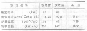 在350kg井室熔煉電阻爐中,改造前和改造后熔煉第二爐所用時(shí)間縮短了1小時(shí)。據(jù)統(tǒng)計(jì)已改造的6臺(tái)井室爐及2臺(tái)箱式爐的升溫時(shí)間減少20%~40%,熱效率提高15%以上。