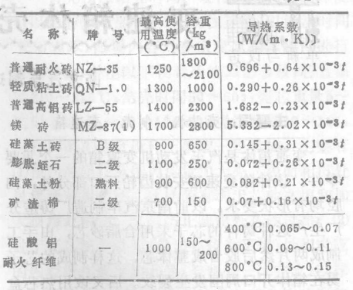 爐襯的主要作用是隔熱保溫。在選用上要滿足使用溫度、工作壽命,筑爐成本、能源消耗、施工難易等一系列要求,不論耐熱材料還是保溫材料都不應(yīng)長(zhǎng)期超溫使用。表2列出了常用的耐熱材料和保溫材料。