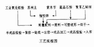 先加入聚苯乙烯球及粘土,攪拌均勻后再加入工業氧化鋁和藍晶石粉。先攪拌3分鐘,再徐徐加水攪拌(最佳加水量為28%~30%),待泥料成為均勻的可塑料后即可成形磚坯。