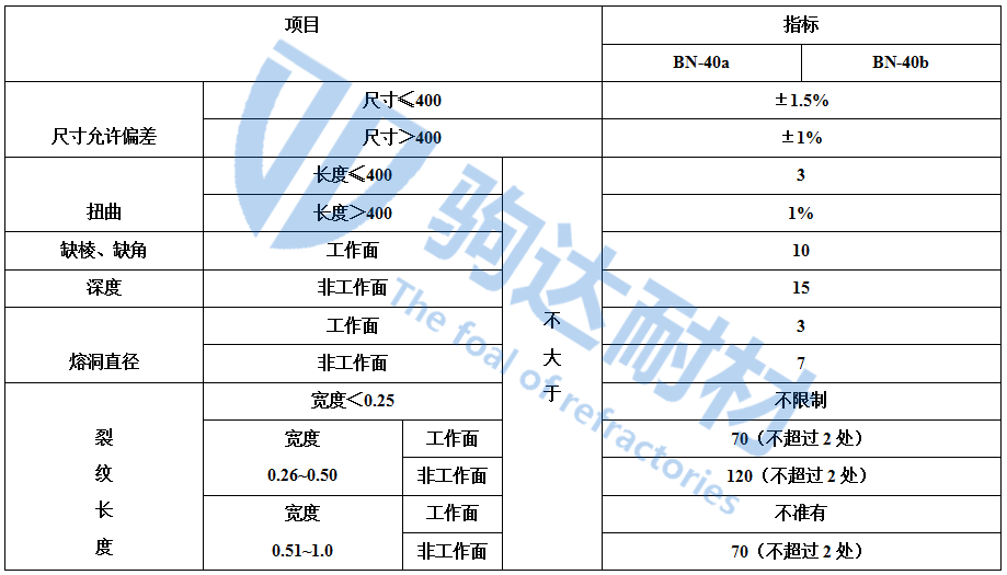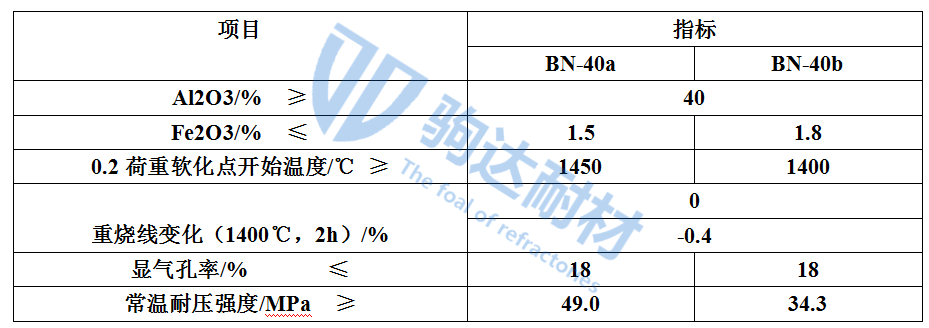 中國冶標(YB/T 5106 — 1993)將粘土質耐火磚按理化指標分為N-1、N-2a、N-2b、N-3a、N-3b、N-4、N-5、N-6八種牌號,其理化指標見表1所列。